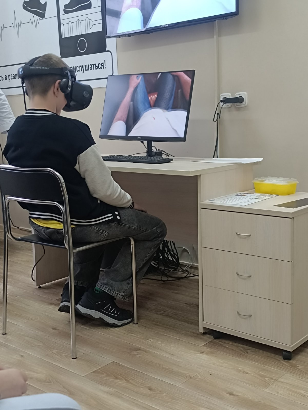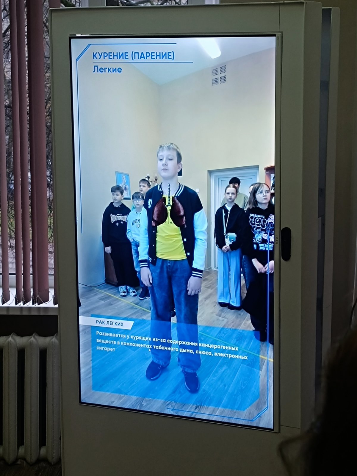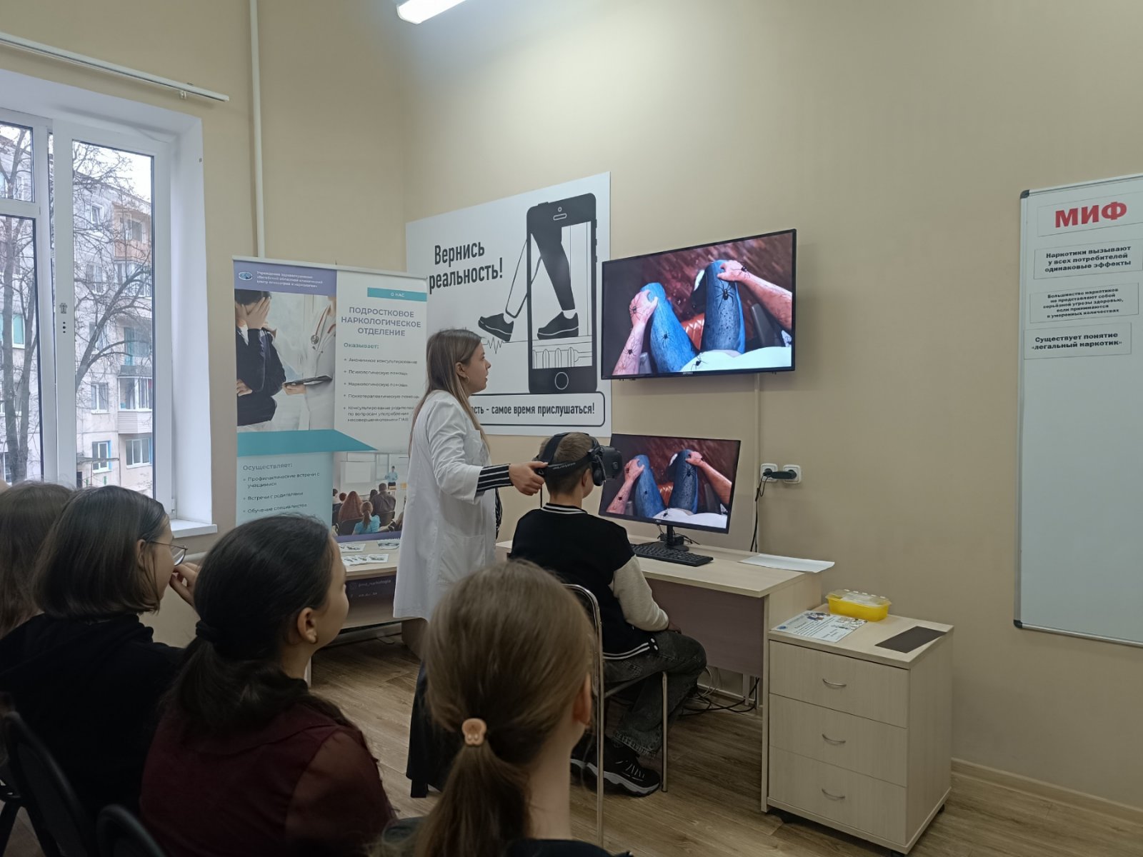 Ребята рассмотрели 3D органы человека с патологиями, примерили очки виртуальной реальности с эффектом визуализации реального состояния наркотического опьянения.