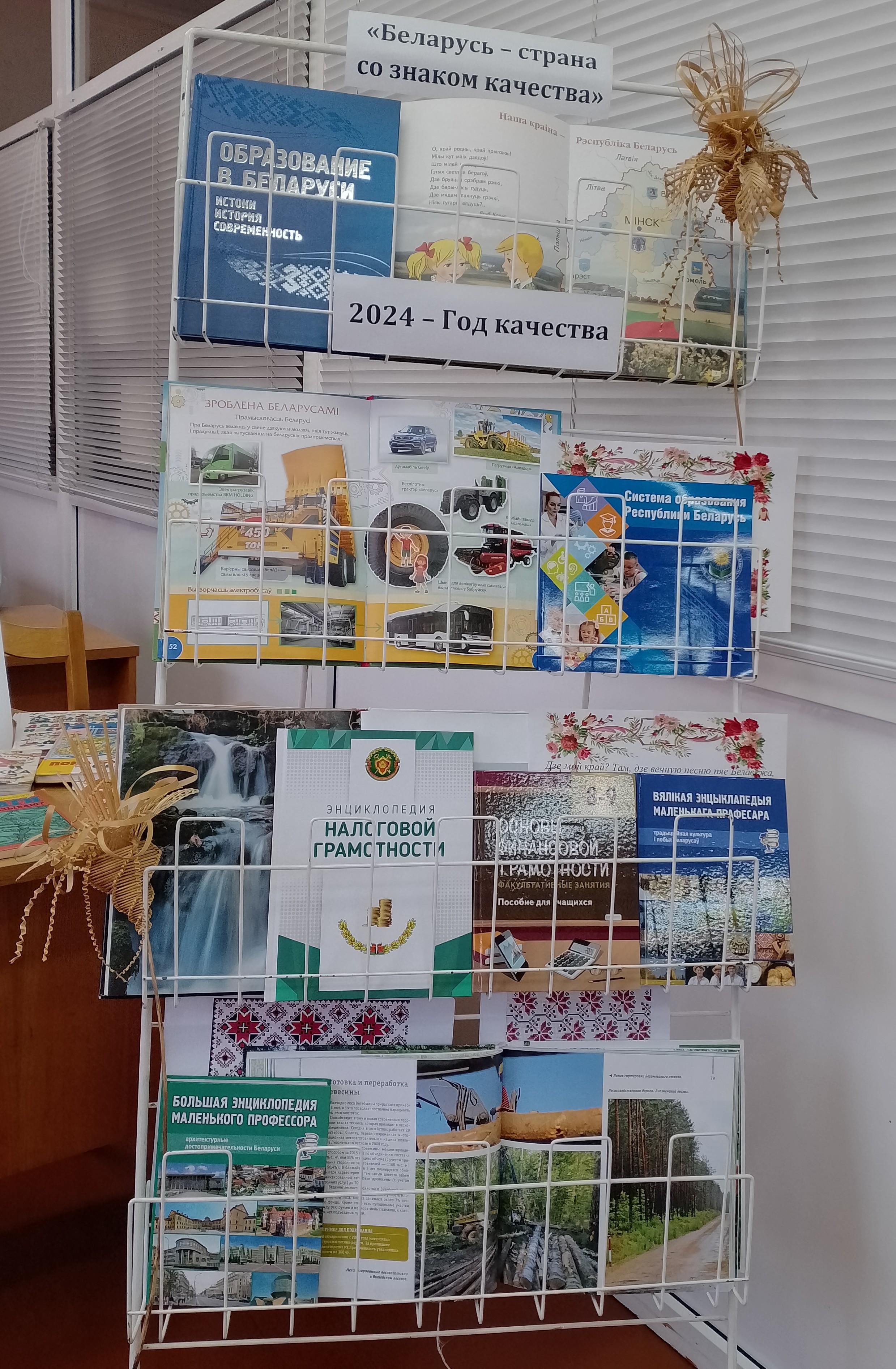Выставка — просмотр литературы социально-экономической тематики называется «Беларусь — страна со знаком качества».