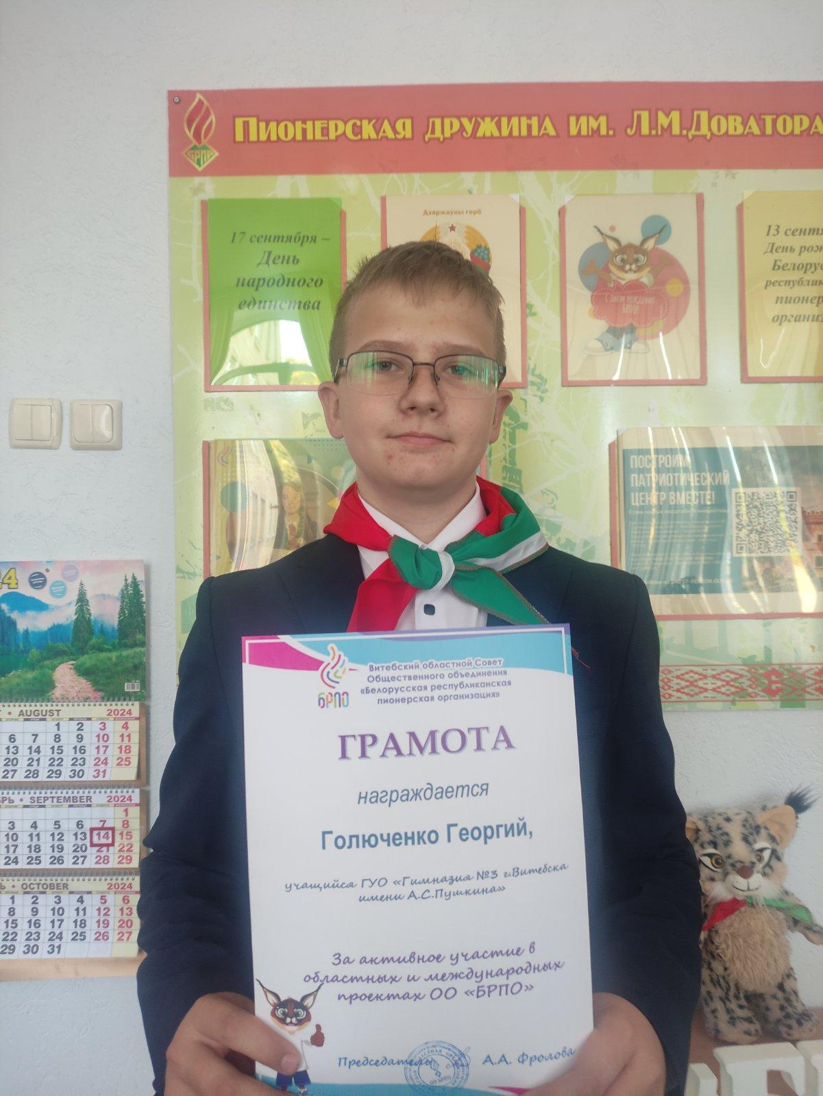 13.09.202413 сентября в День рождения Белорусской республиканской пионерской организации в гимназии № 3 города Витебска состоялось мероприятие 《Встреча на все 100!》с участием победителя заключительного этапа республиканского конкурса » Я — патриот своей страны» Маргариты Довгаль, учащейся 11《А》класса.