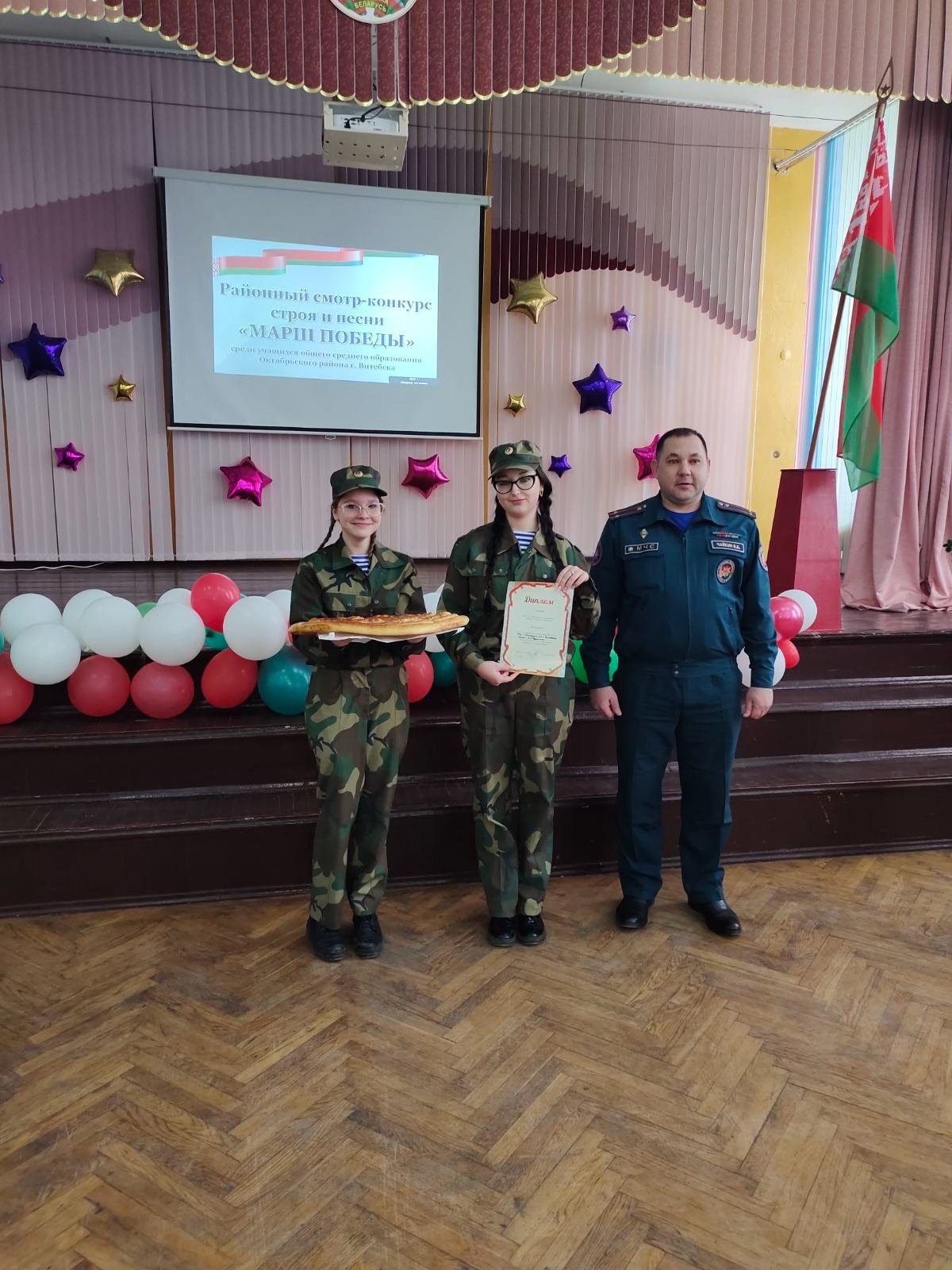 14 февраля на базе средней школы № 6 г. Витебска имени А.Е. Белохвостикова прошел районный смотр — конкурс строя и песни «Марш Победы», посвященный 80-летию Победы советского народа в Великой Отечественной войне.