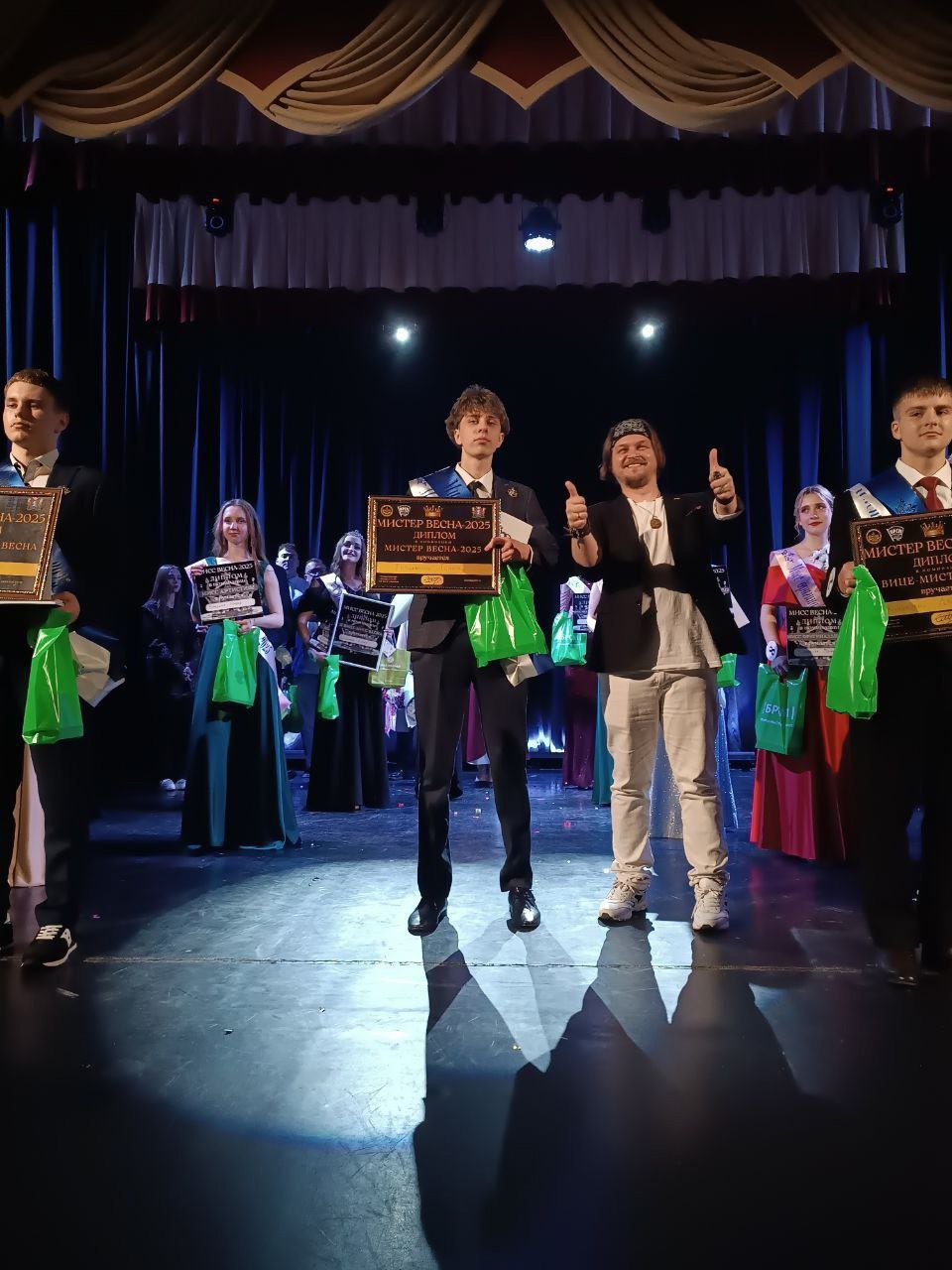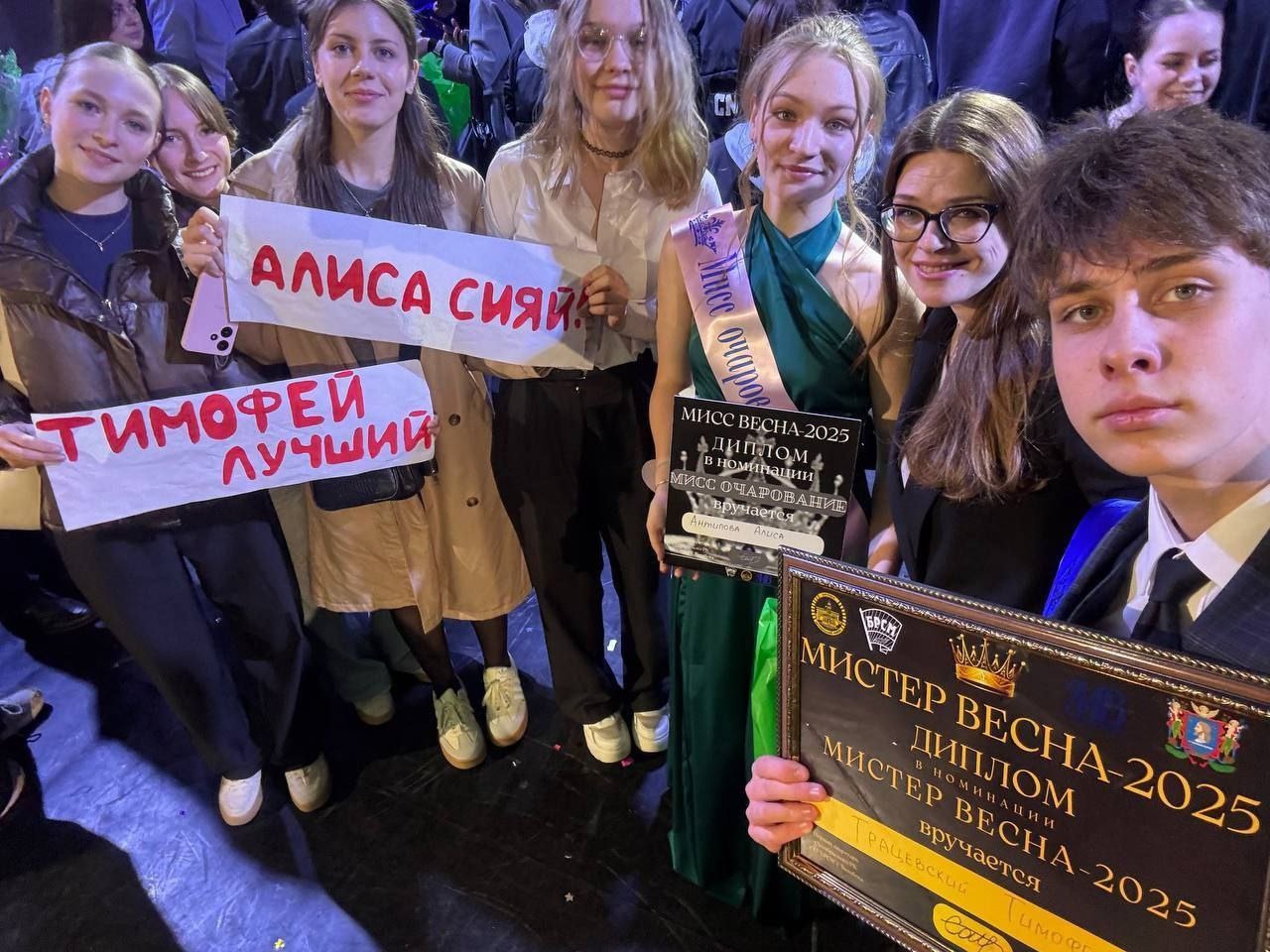 По итогам конкурса Алиса Антипова победила в номинации «Мисс очарование», а Тимофей Трацевский стал «Мистером обаяние» и завоевал главный титул «Мистер Весна»