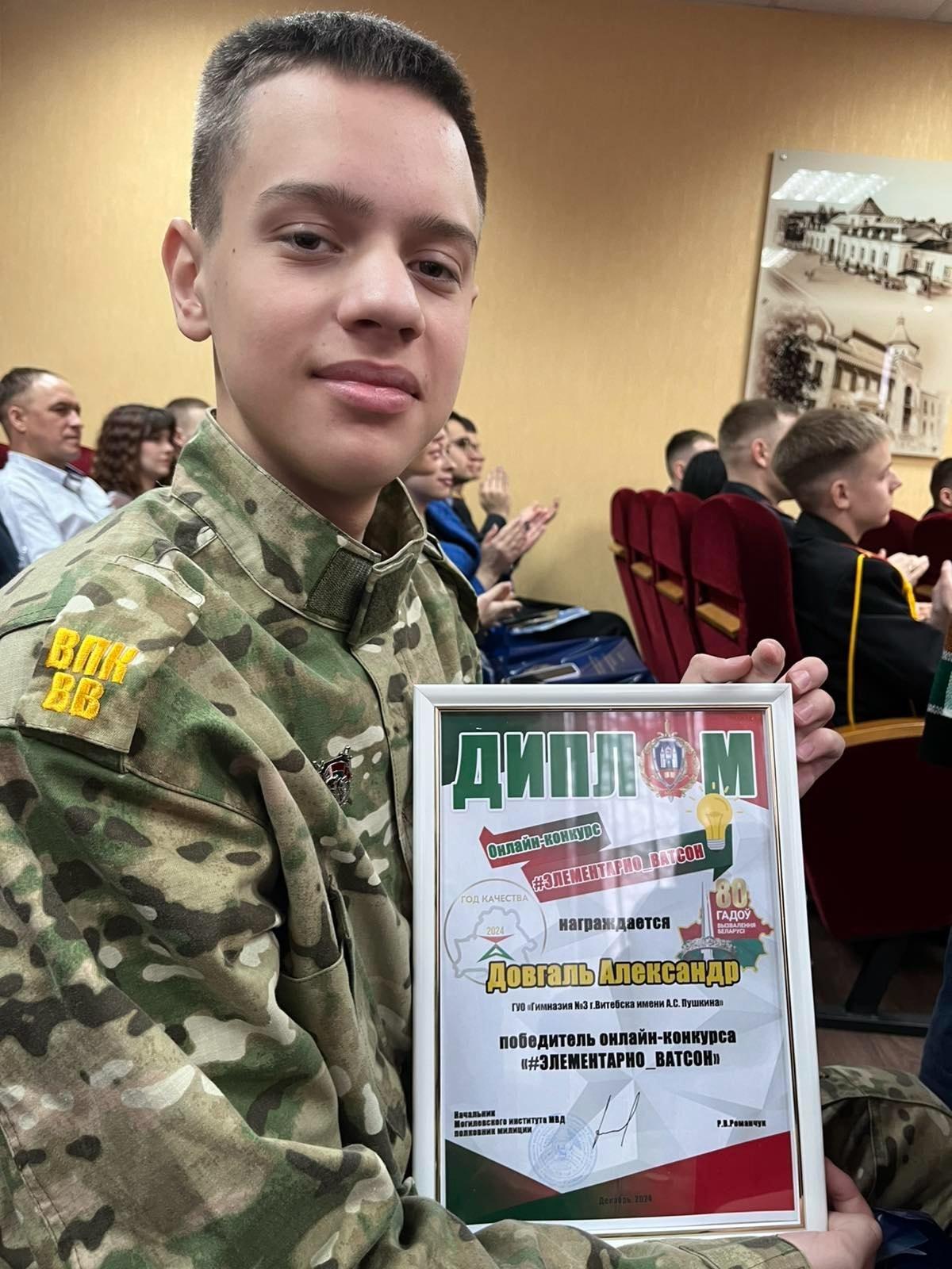 Поздравляем Довгаля Александра, учащегося 8 класса, с достойной победой и желаем дальнейших успехов!