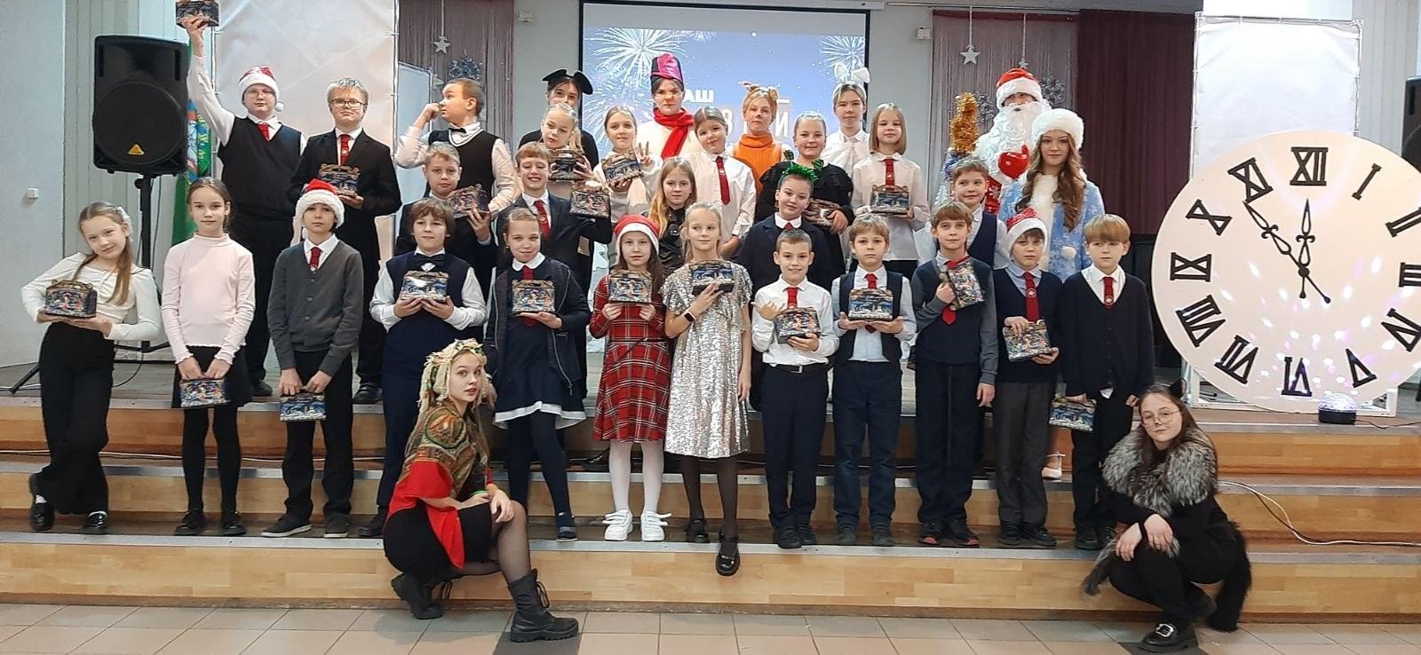 Новогодний праздник для учащихся гимназии создали активисты тимуровского отряда «Огонёк» и волонтёрского отряда «Доброе сердце».