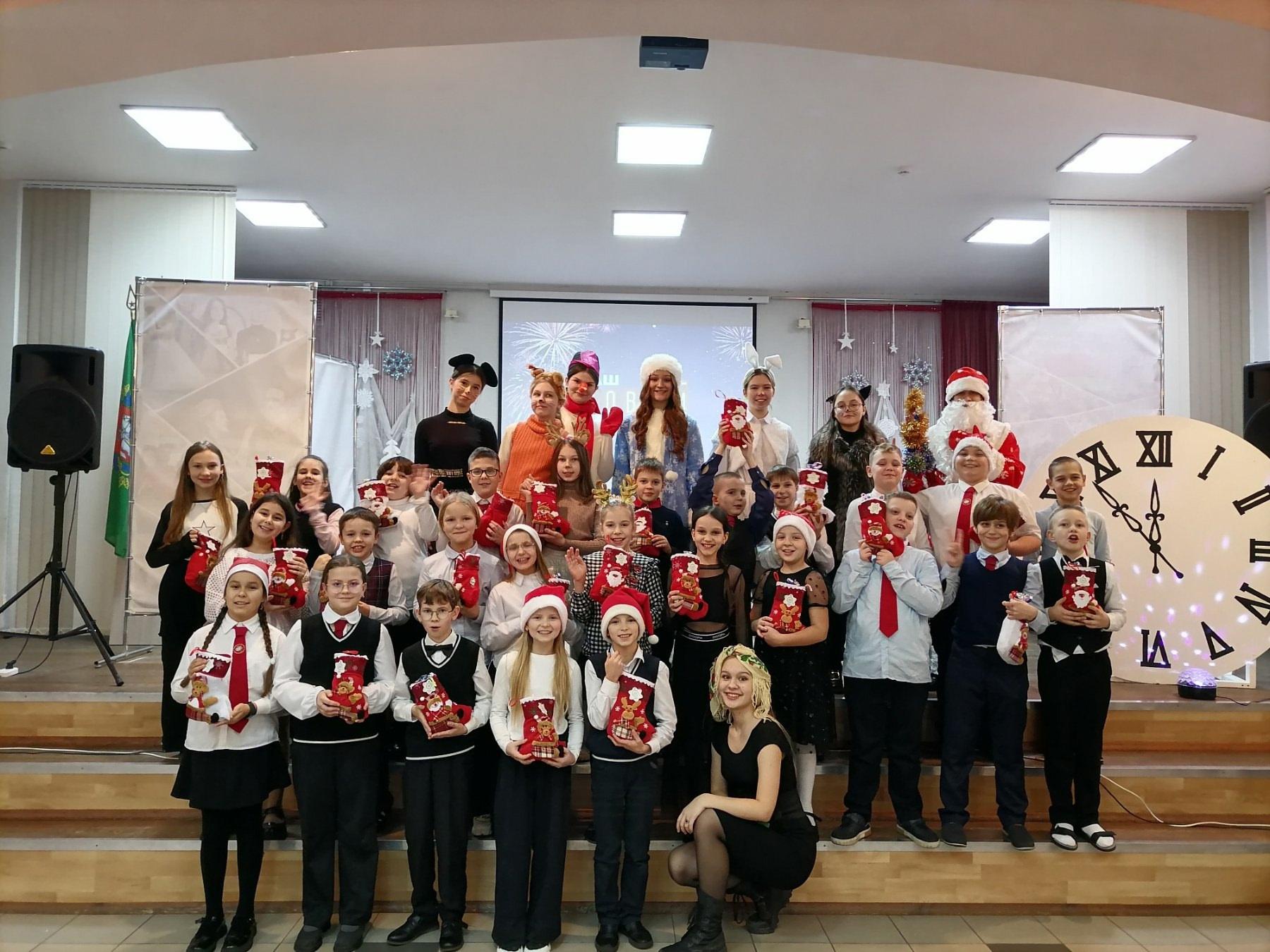 Новогодний праздник для учащихся гимназии создали активисты тимуровского отряда «Огонёк» и волонтёрского отряда «Доброе сердце».