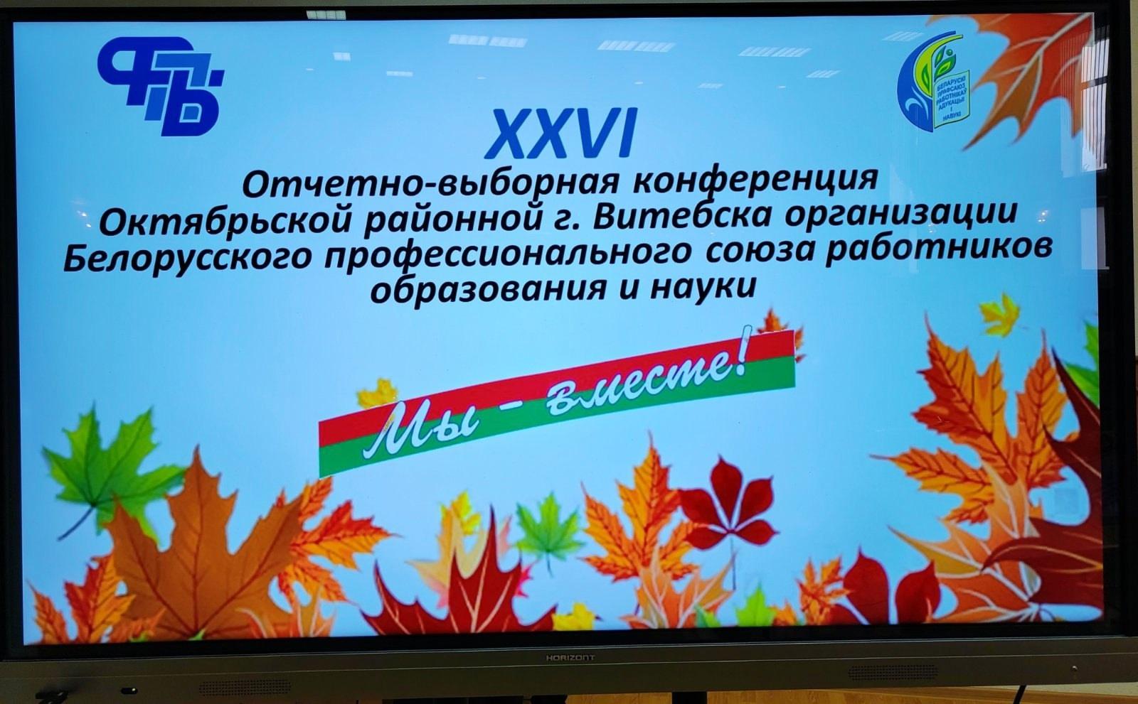 27 сентября в актовом зале администрации Октябрьского района состоялась XXVI отчетно-выборная конференция Октябрьской районной г. Витебска организации Профсоюза.