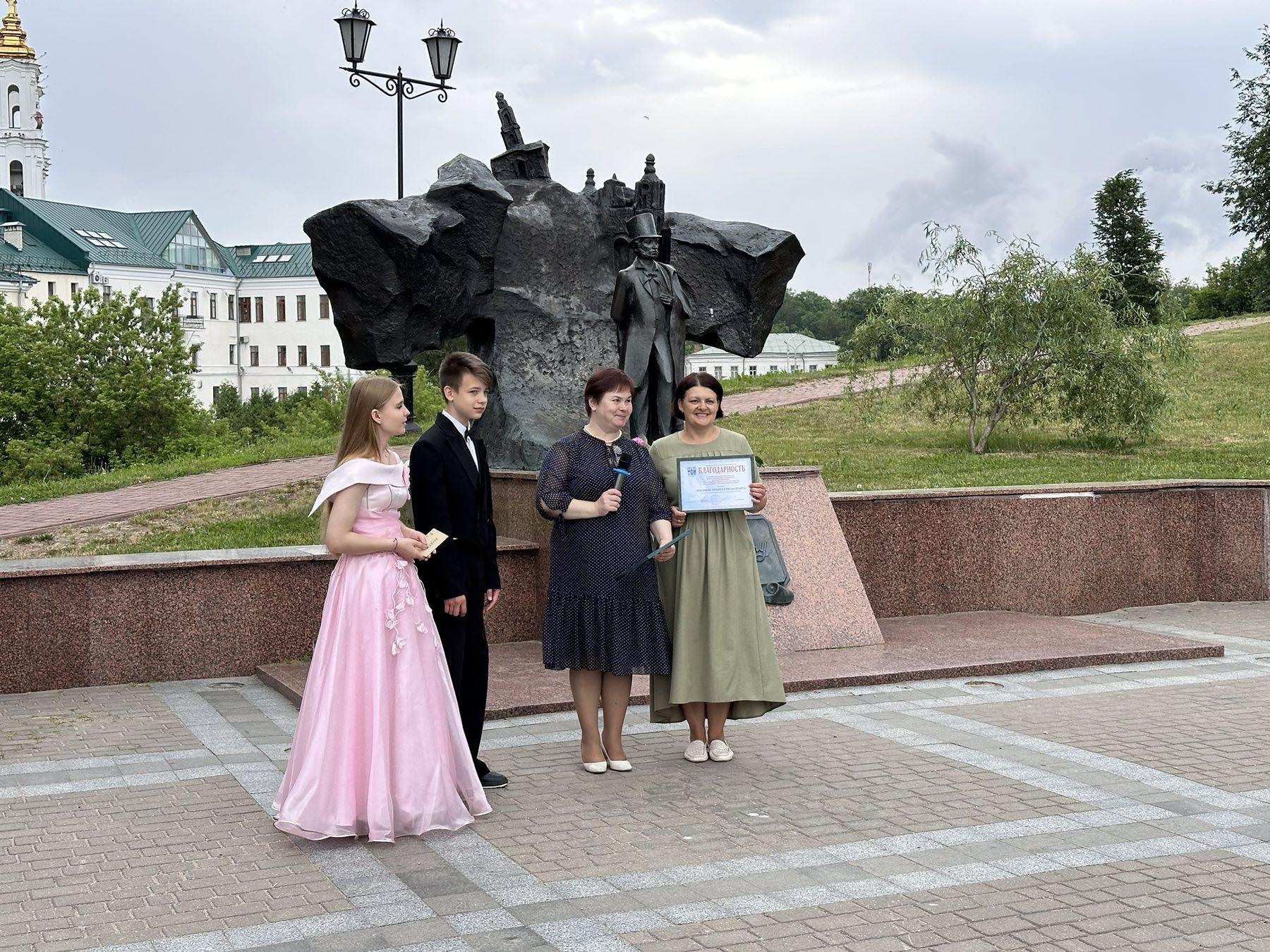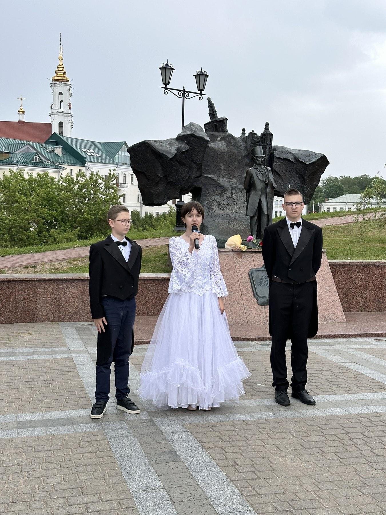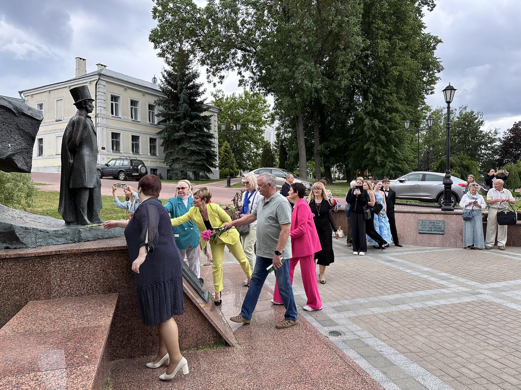 06.06.2024В 225-ю годовщину рождения великого поэта почтить его память собрались учащиеся и воспитанники оздоровительных лагерей «Лидер», «Город здоровья», «Ветразь», волонтерского лагеря «Искра» ГУО «Гимназия № 3 г.Витебска имени А.С.Пушкина». Участники праздника ещё раз вспомнили строки бессмертных произведений. Яркие страницы биографии поэта легли в основу литературно-музыкальной композиции «Идут века, а Пушкин остается». Праздник состоялся при участии членов ОО «Союз писателей Беларуси». Почетным гостем стала Лунёва Л.К. – помощник Почетного консула Российской Федерации в Витебске и Витебской области.