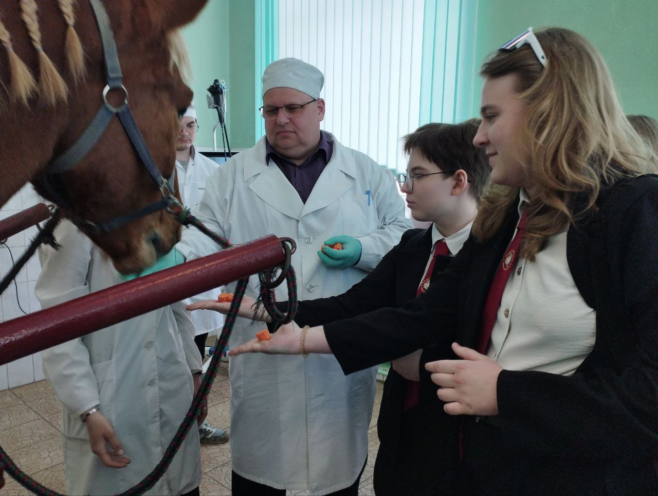 Также учащиеся познакомились с питомцами академии: собакой Фантой, которая покорила всех своими уникальными способностями, телёнком Мишей и козлятами, побывали в анатомическом музее.