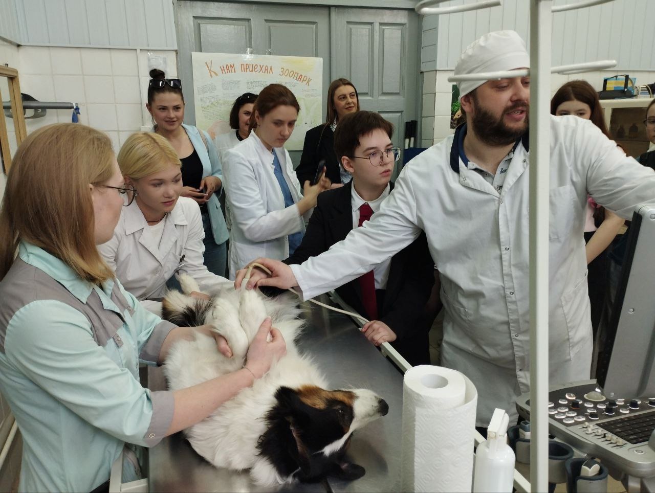 Для ребят были организованы практические занятия, на которых преподаватели академии рассказали о работе ветеринарного врача и даже предоставили возможность желающим попробовать провести УЗИ четвероногому пациенту.