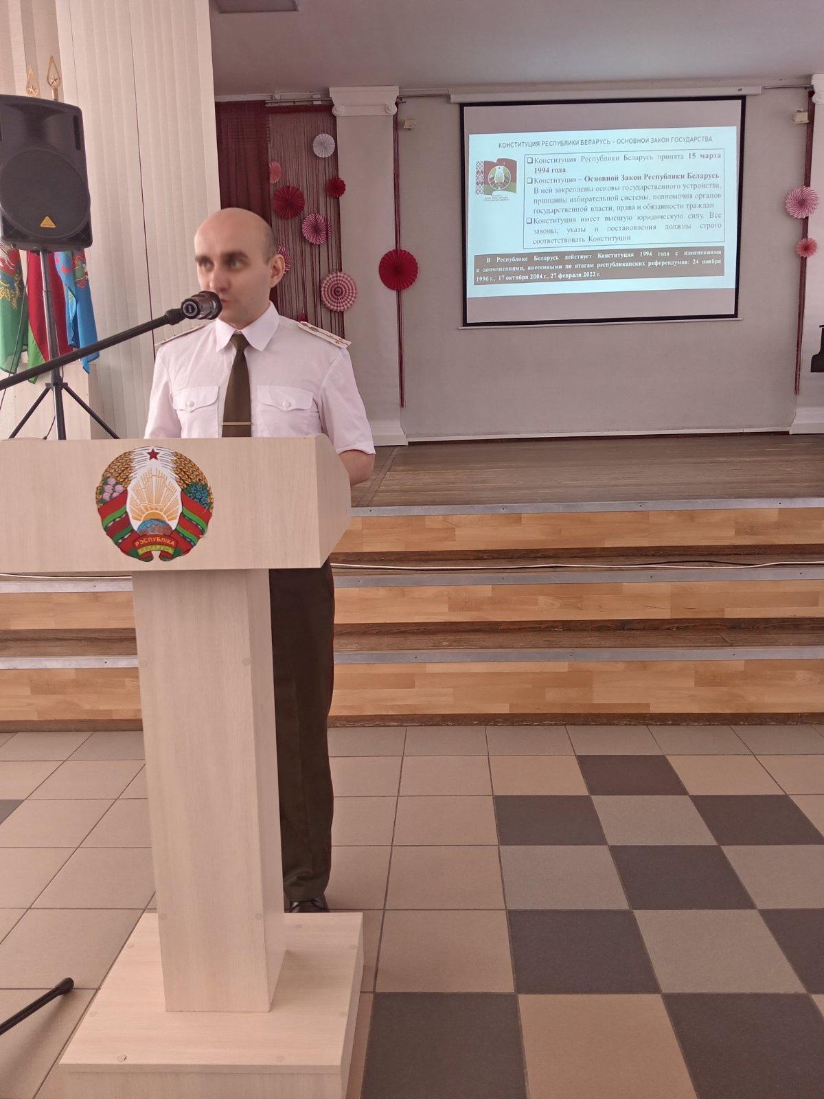 Улахович В. А.. руководитель по военно-патриотическом воспитания подробно рассказал о преамбуле Конституции, статьях главного закона нашей страны.