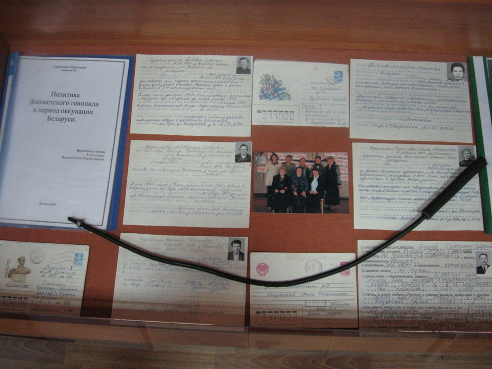Деятельность нашего музея посвящена не только сбору материалов и документов, она посвящена мемореализации памяти и просвещению молодежи. Молодое поколение – это основа нашего общества, строители будущего страны и люди, которые впоследствии буду сохранять мир для нашей Родины. Поэтому главный упор в деятельности нашего музея мы делаем на воспитание и просвещение подрастающего поколения.