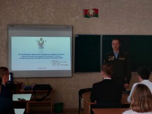 03.10.2023 Профессий много, а нужно сделать выбор в пользу одной. Служение своему Отечеству во все времена было достойным выбором настоящих граждан страны. С целью привлечь внимание подрастающего поколения к офицерской профессии в гимназии №3 прошла встреча с представителями Военной академии Республики Беларусь и Витебского областного военного комиссариата. Военная академия Республики Беларусь входит в число крупнейших вузов страны. Почетные гости рассказали ребятам об истории учебного заведения, о факультетах, на которых осуществляется подготовка кадровых офицеров, об условиях и порядке приема абитуриентов и специфике обучения.