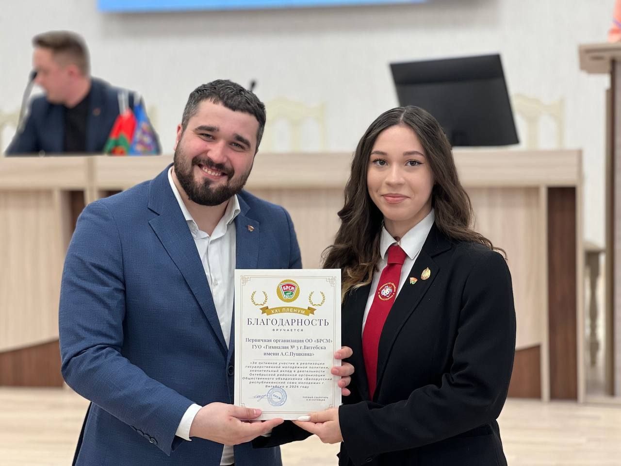 Пленум отметил положительный опыт работы первичной организации гимназии в реализации основных направлений деятельности ОО «БРСМ» и волонтерского движения, по привлечению молодежи в ряды ОО «БРСМ», а также в работе в интернет- пространстве и СМИ.