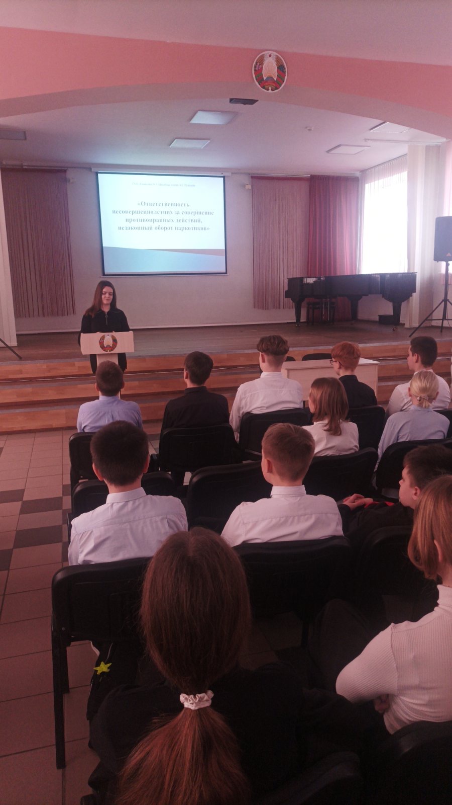 встреча учащихся VII–VIII классов с представителями прокуратуры г.Витебска «Ответственность несовершеннолетних за совершение противоправных действий, незаконный оборот наркотиков»;