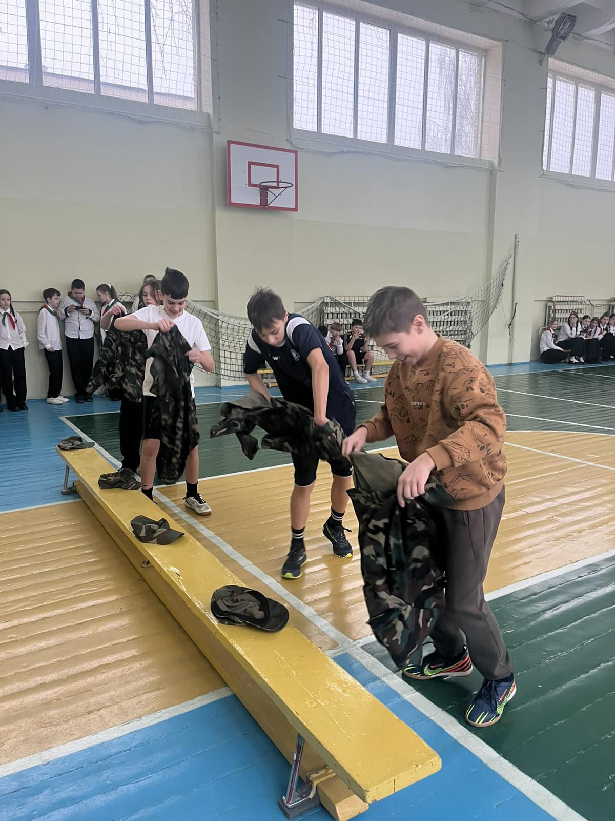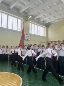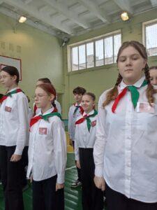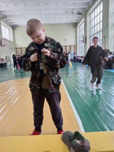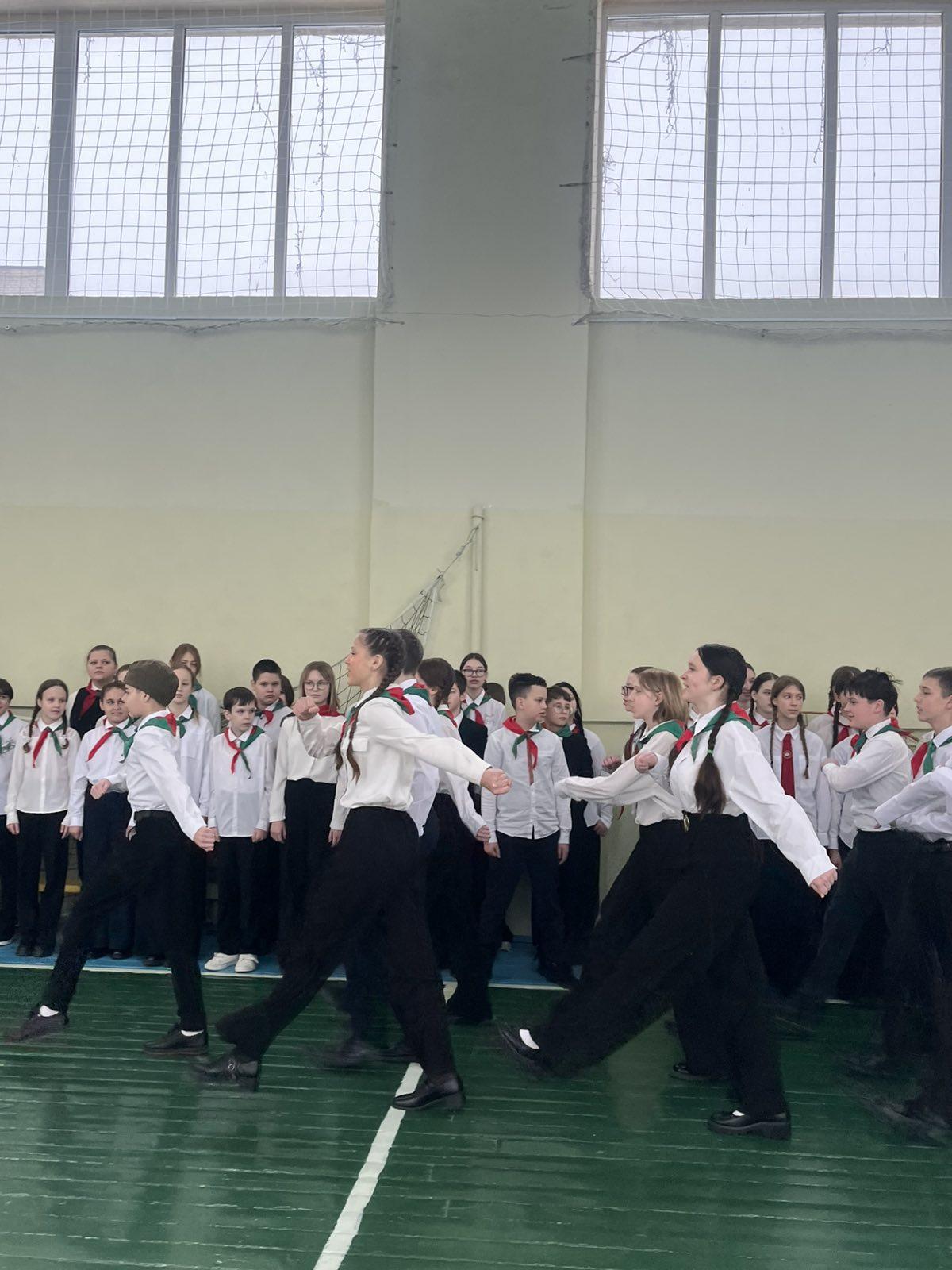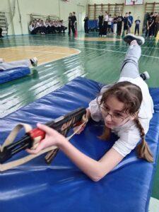 Команды учащихся соревновались в смотрел строя и песни, интеллектуально турнире, военнизированной эстафете.