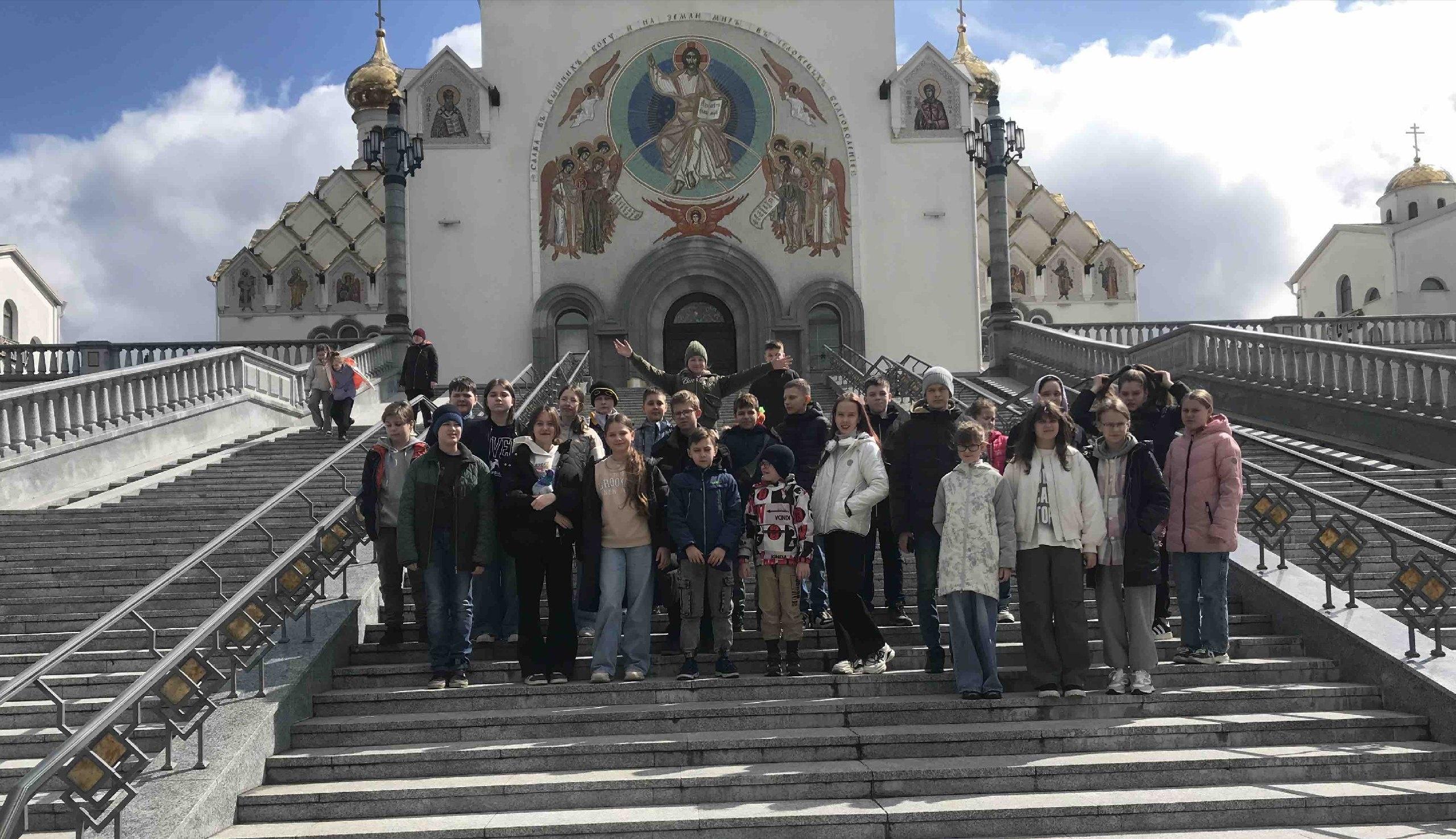 27.04.2024В этом году мероприятие посвящено 80-летию освобождения Беларуси от немецко — фашистских захватчиков. В рамках марафона ребята посетили Мемориальный комплекс «Хатынь» — памятник жертвам фашистского террора на белорусской земле, единственное в мире кладбище сожженных деревень в годы Второй мировой войны. Гимназисты возложили цветы в память о сожженных жителях деревни и почтили их память минутой молчания. Также в рамках поездки ребята посетили Храм‐памятник в честь Всех святых и в память о жертвах, спасению Отечеству послуживших. Участие в данном проекте стало настоящим Уроком Памяти для ребят о страшных событиях, произошедших в марте 1943 года.