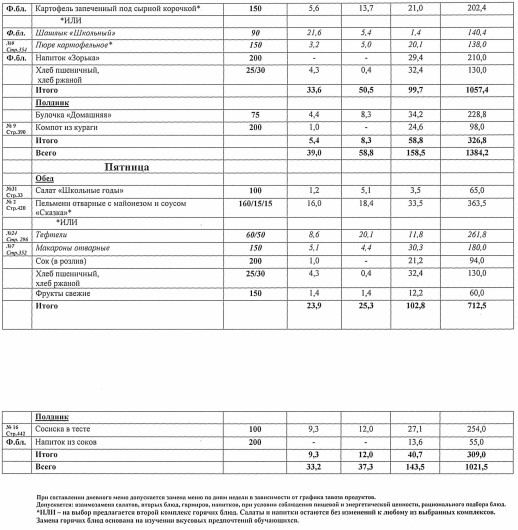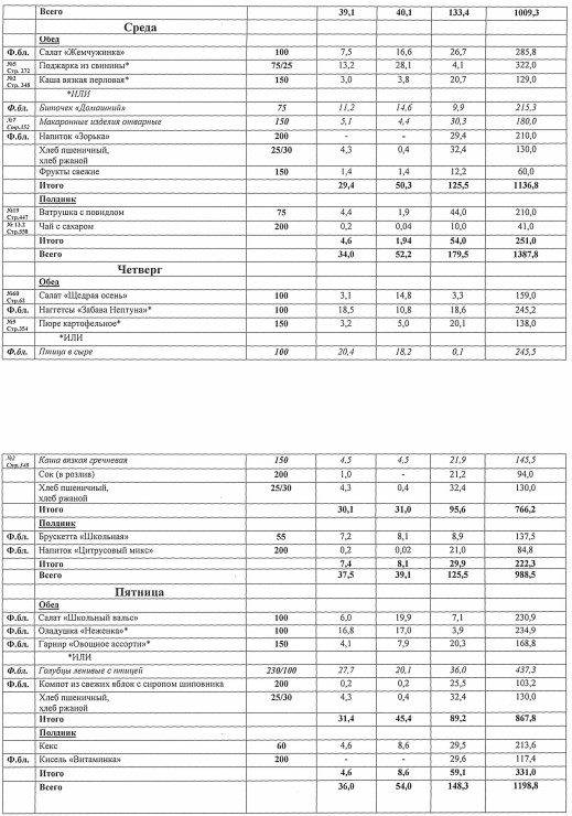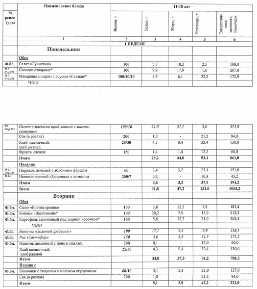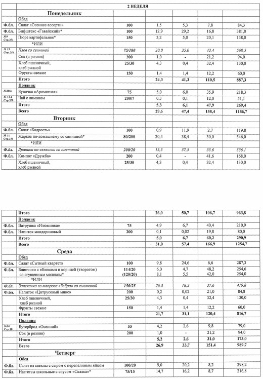 Примерный двухнедельный рацион питания для учащихся учреждений общего среднего образования г. Витебска