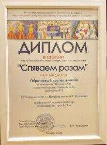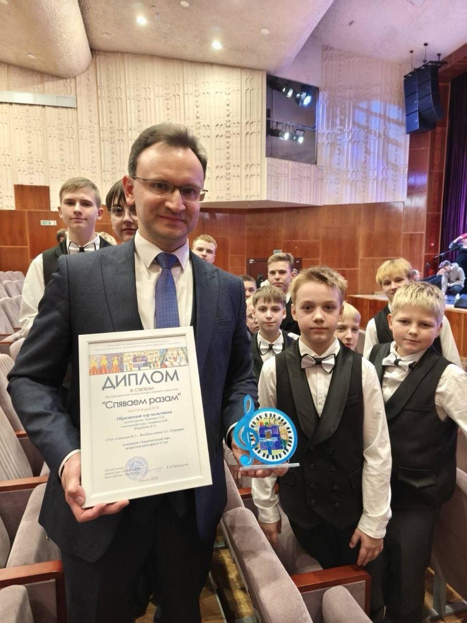 27.03.2026Образцовый хор мальчиков гимназии (руководитель А.Ляхнович, концертмейстеры О.Ломакина, Р.Шарабайко) сегодня принял участие в Республиканском смотре-конкурсе хорового творчества «Спяваем разам»!