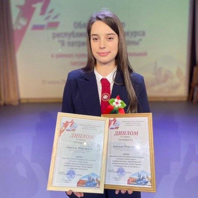 № 3 МАРГАРИТА ДОВГАЛЬ — победитель Республиканского конкурса «Я патриот своей страны»!