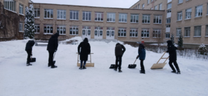 Трудовые бригады учащихся гимназии продолжают работу по очистке от снега территории гимназии. «Снежный субботник»  продолжается