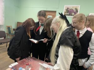 В подготовке данного мероприятия также участвовали ребята 3-8 классов, работами которых было проиллюстрировано произведение. Беседа с учащимися была насыщенной и содержательной: о патриотизме, о памяти военных лет, о ценности мира, о важности чтения книг.