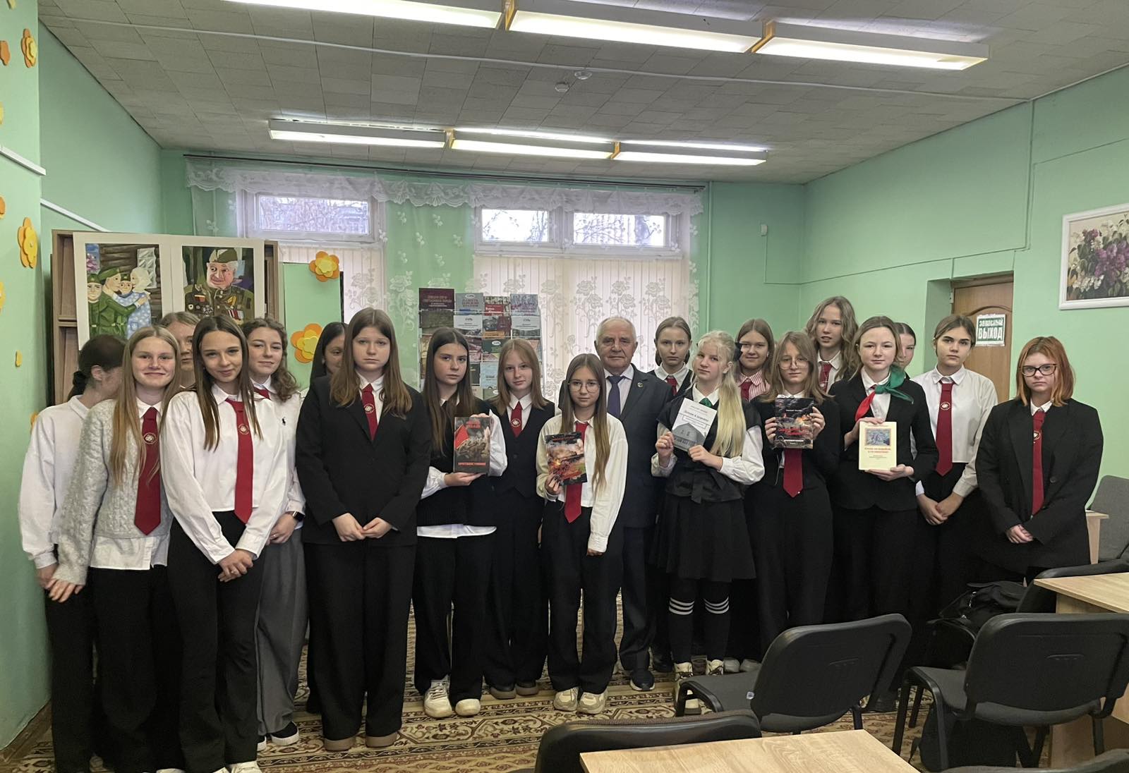 В подготовке данного мероприятия также участвовали ребята 3-8 классов, работами которых было проиллюстрировано произведение. Беседа с учащимися была насыщенной и содержательной: о патриотизме, о памяти военных лет, о ценности мира, о важности чтения книг.