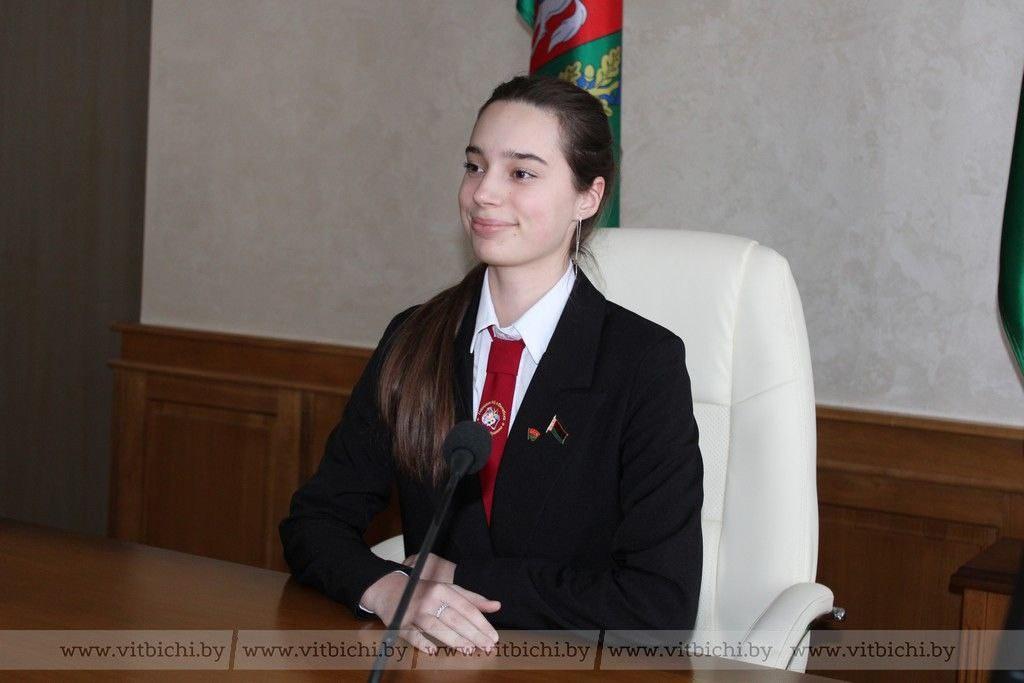 Учащиеся гимназии № 3, члены молодежной палаты г.Витебска Алиса Антипова и Маргарита Довгаль приняли участие в диалоге с председателем Витебского городского Совета депутатов Ольгой Ивановой.
