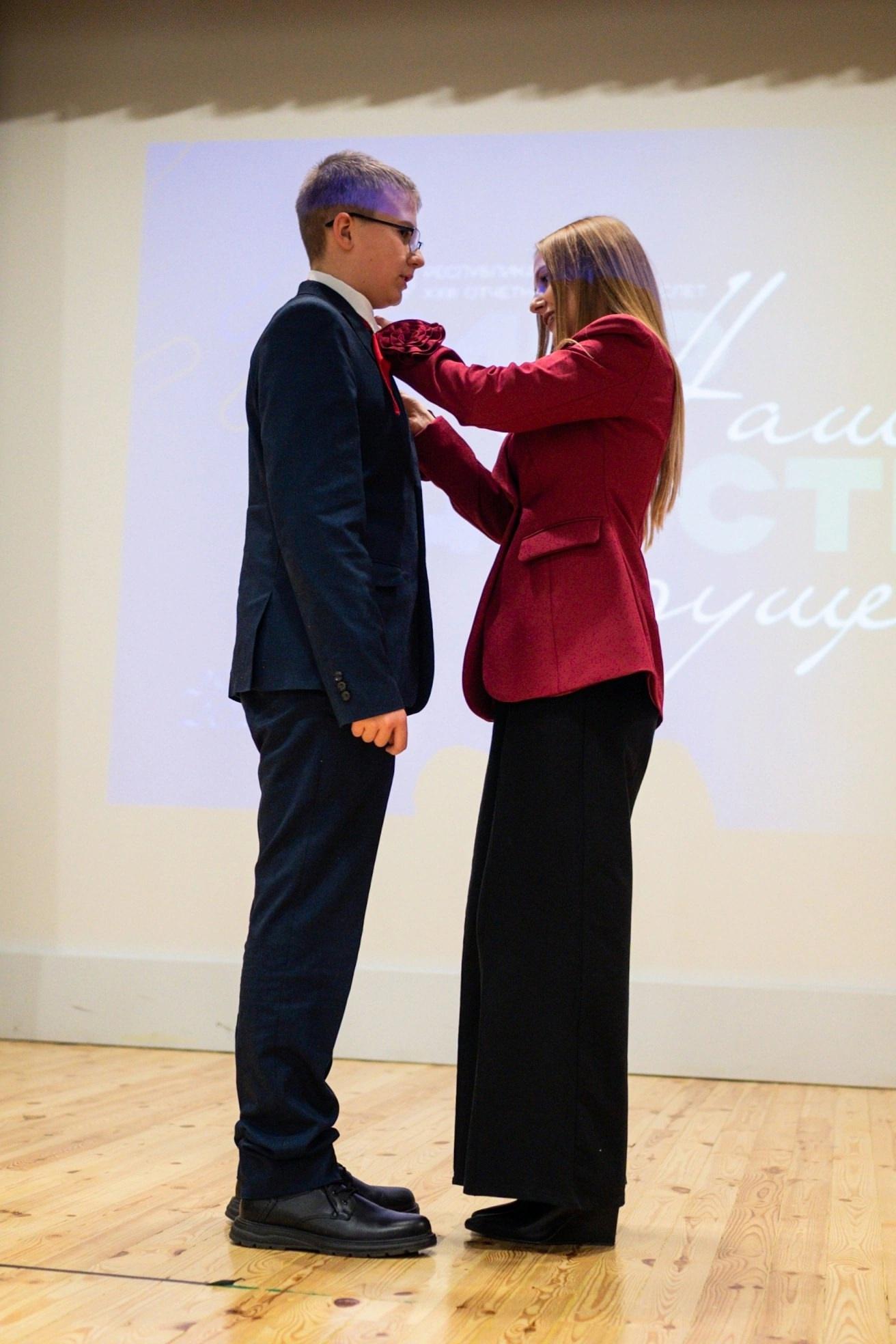 В торжественной обстановке председатель ЦС ОО «БРПО» Кристина Сорока вручила Георгию нагрудный значок «Всегда готов». Данная награда вручается самым достойным членам Белорусской республиканской пионерской организации.