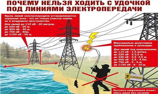 Дело в том, что сами того не осознавая, рыболовы находятся в группе «риска» в вопросе электротравматизма. Увлекшись любимым занятием, рыболовы часто забывают обо всем вокруг, в том числе и об опасности, обусловленной не только водой, но и которая находится высоко над головой. Связано это с прохождением высоковольтных линий электропередачи вблизи и над водоемами.