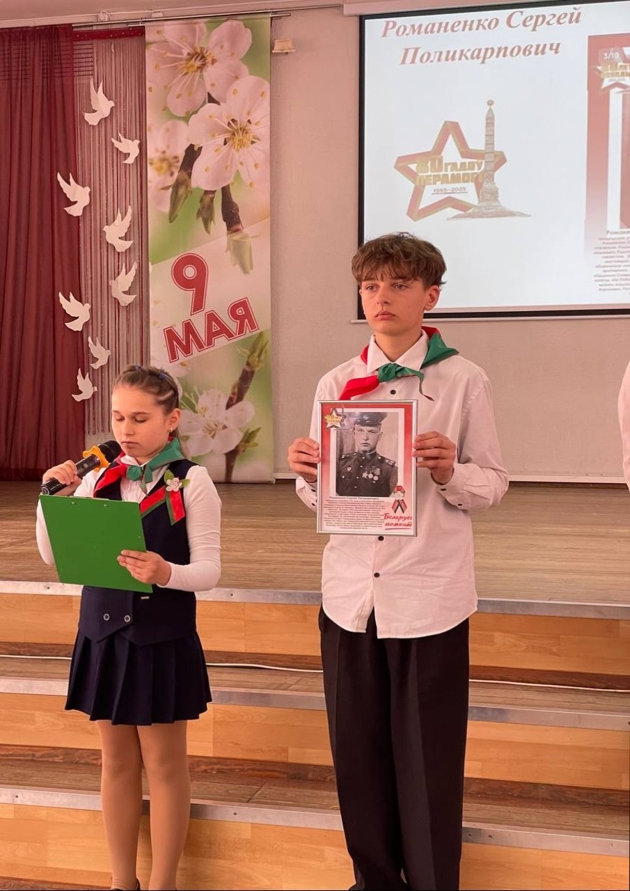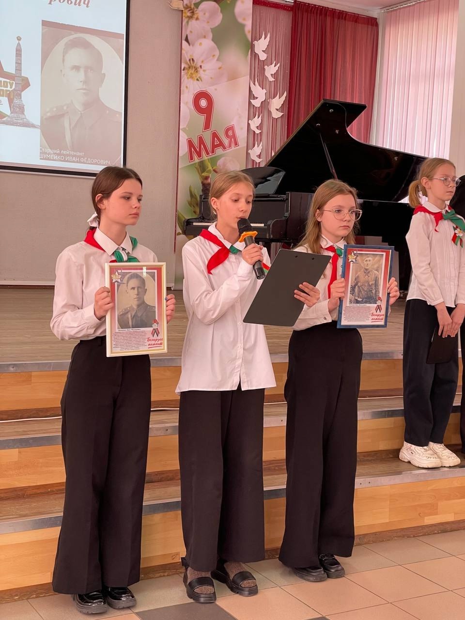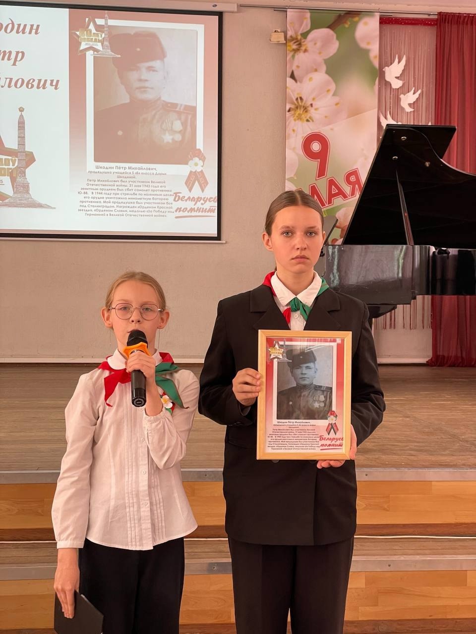 С Днем Победы всех присутствующих поздравил председатель Витебской городской организации имени Янова Белорусского союза офицеров В.В. Кривко, а директор гимназии Е.А. Матвеева вручила грамоты активным участникам гражданско – патриотических проектов.