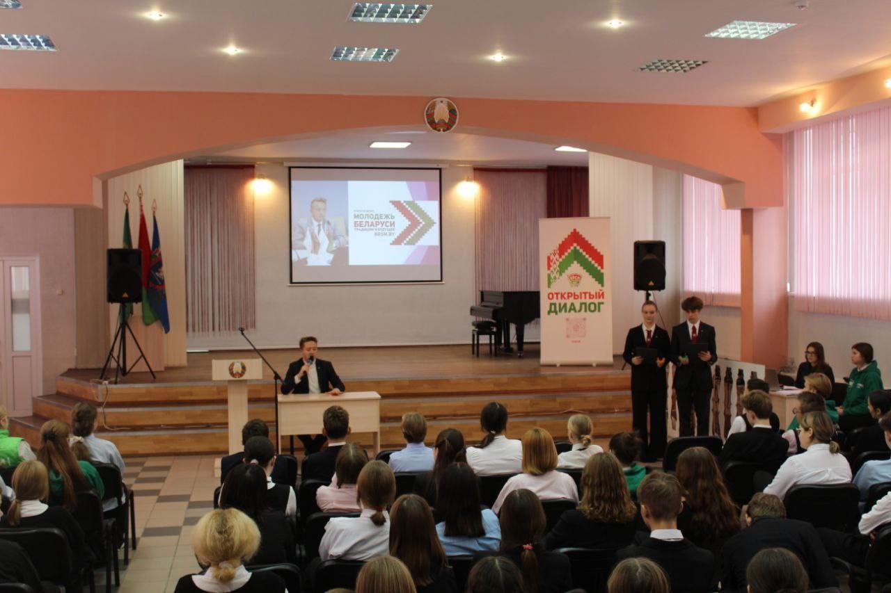 В рамках республиканской общественно-культурной акции «Марафон единства» в гимназии № 3 состоялась диалоговая площадка с участием первого секретаря Витебского городского комитета ОО «БРСМ» Александра Бышнёва.