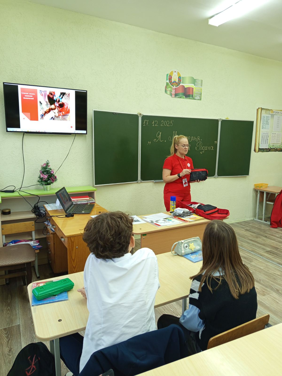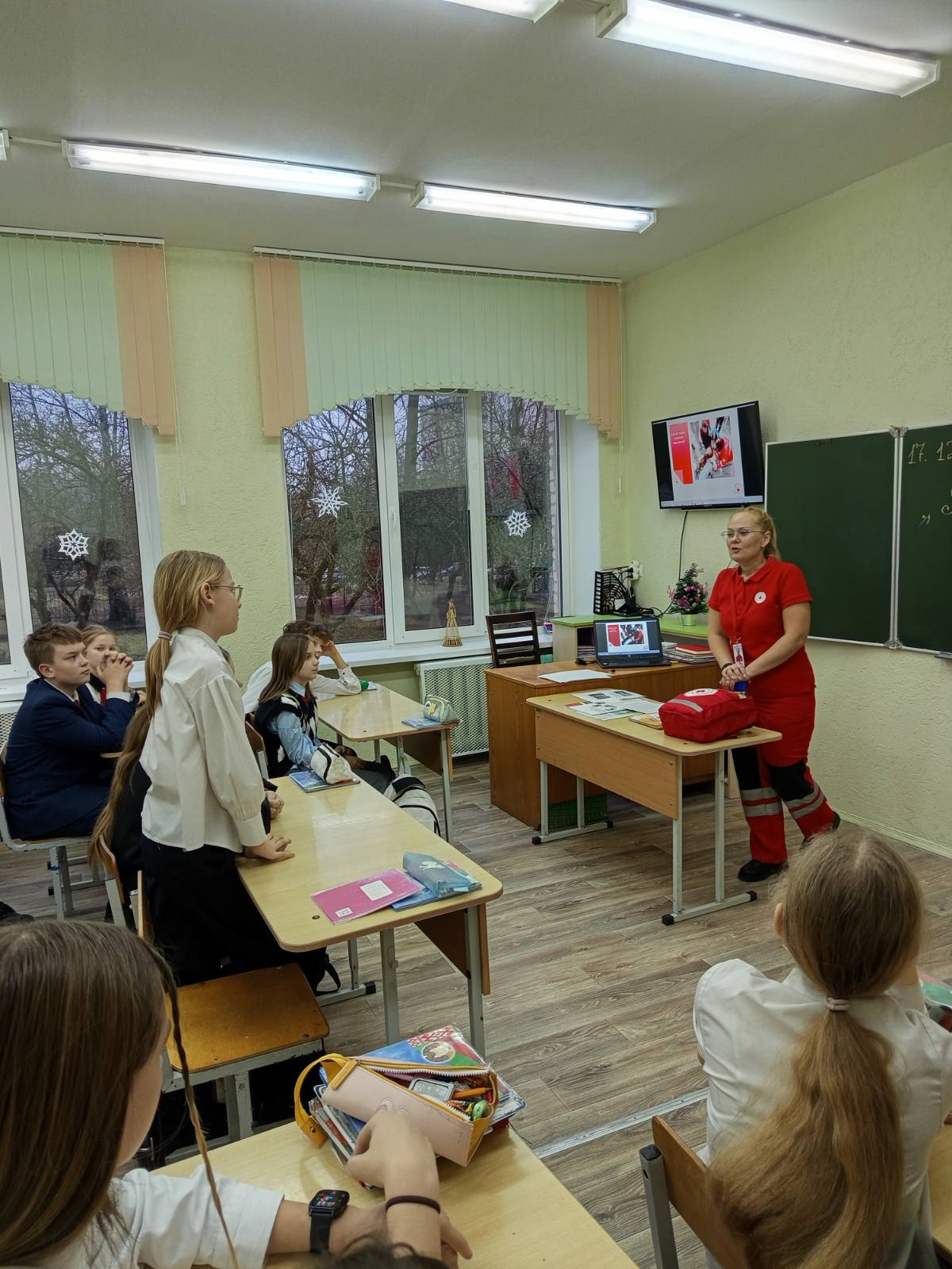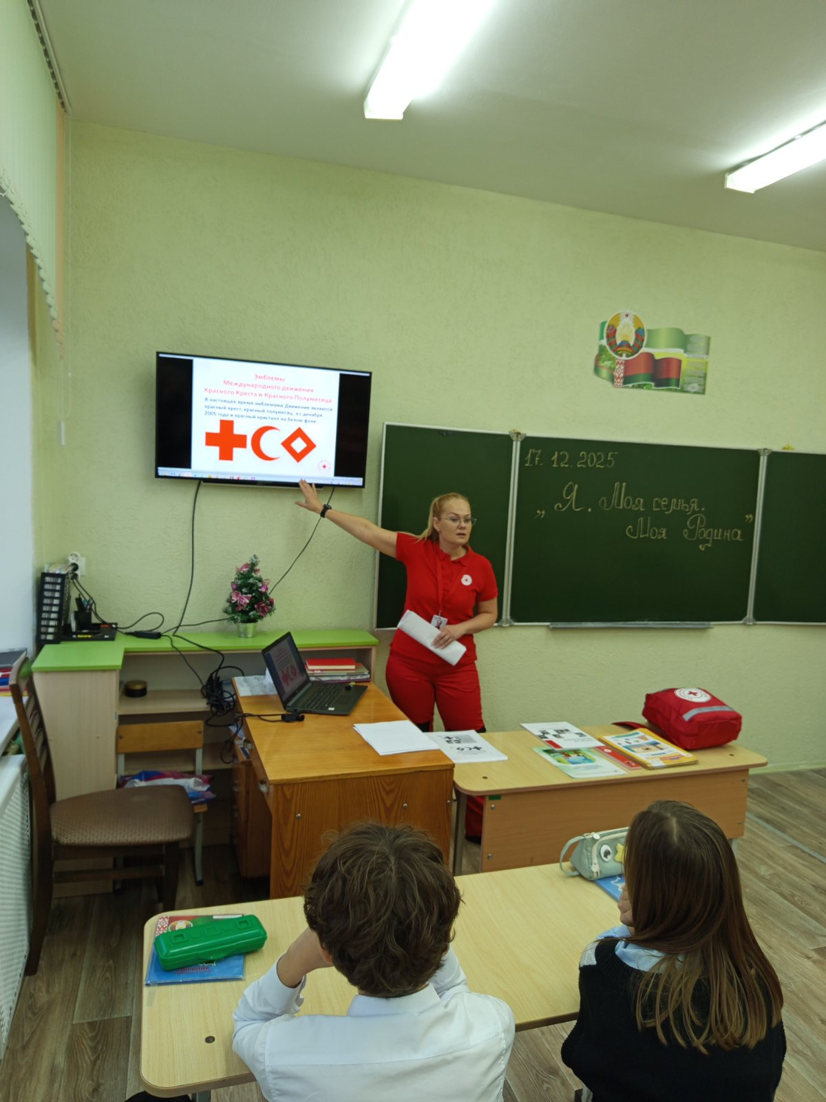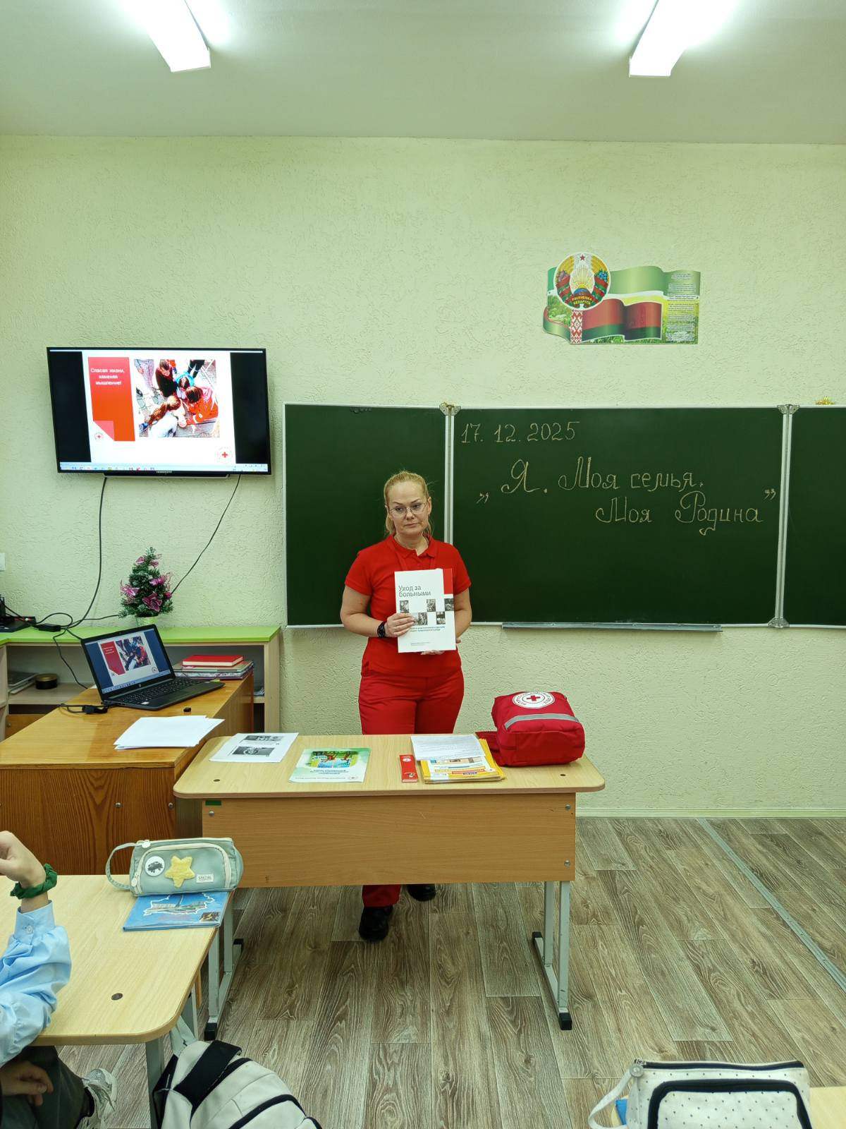 В 6″Б» классе 17.12 состоялось очередное занятие по программе «Я. Моя семья. Моя Родина» с приглашением родителей. Речь шла о значимости профессии в жизни человека, о полезных делах во благо человека и нашей родины. Анна Алексеевна Семенидо рассказала о деятельности Красного Креста, ответила на вопросы ребят. Приятным сюрпризом стали подарки!