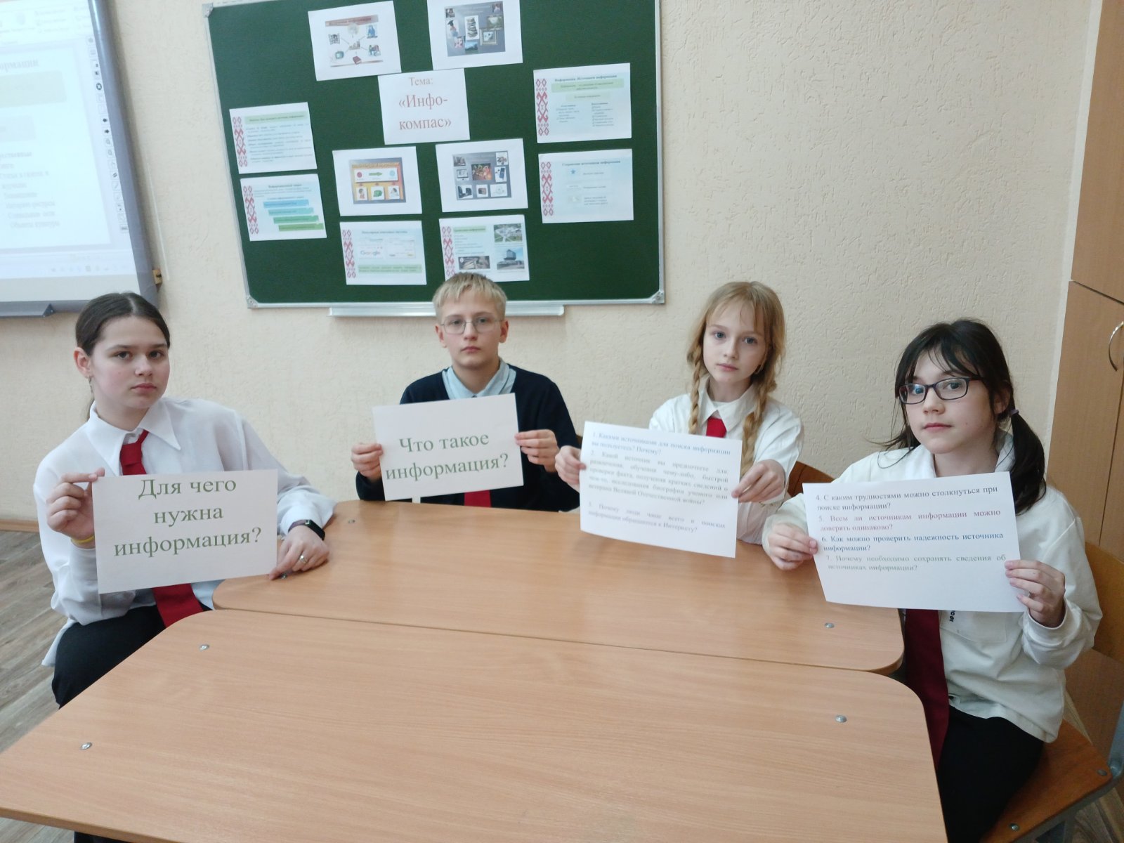Здравствуйте! Тематическое занятие проекта » Я.Моя семья.Моя Родина» по теме Инфо-компас прошло в 6в классе. Учащиеся ответили на вопросы «Для чего нужна информация?, Почему люди чаще всего в поисках информации обращаются к Интернету? Всем ли источникам информации можно доверять одинаково? А также получили памятки «Как проверить источник информации»